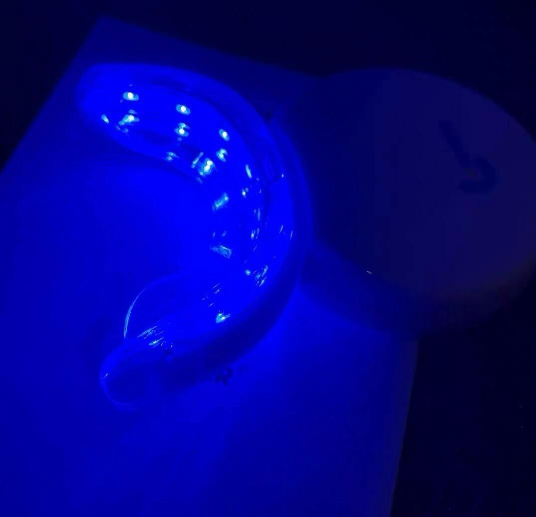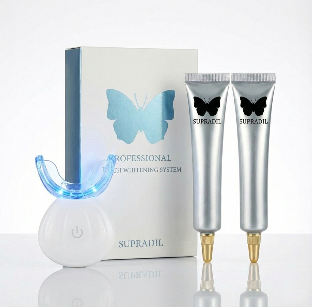 Our system uses the same technology found in professional dental clinics. The Supradil Wireless LED Accelerator emits a specific blue-light frequency that activates our signature Silver-Infused Whitening Gel. This light energy accelerates the breakdown of stains on the surface of your teeth, delivering results up to 3x faster than gels or strips alone.